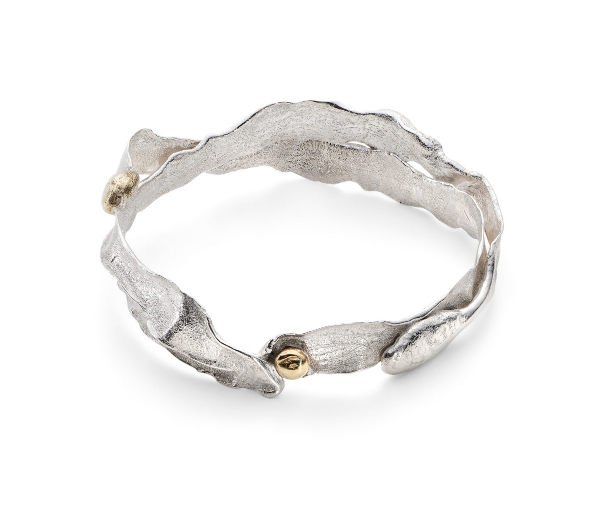 Claire draws inspiration from her diverse background including costume, film, painting and printmaking. She subtly references a diverse spectrum of subjects incorporating the Cornish landscape through to Outer space. Claire’s creations are individual pieces of art and are often described as wearable sculpture. She achieves this by working organically and concentrating on intricate detailing, which makes each piece of jewellery one of a kind. Claire continuously explores different jewellery making techniques and works intuitively with the metal giving the organic matter its freedom.