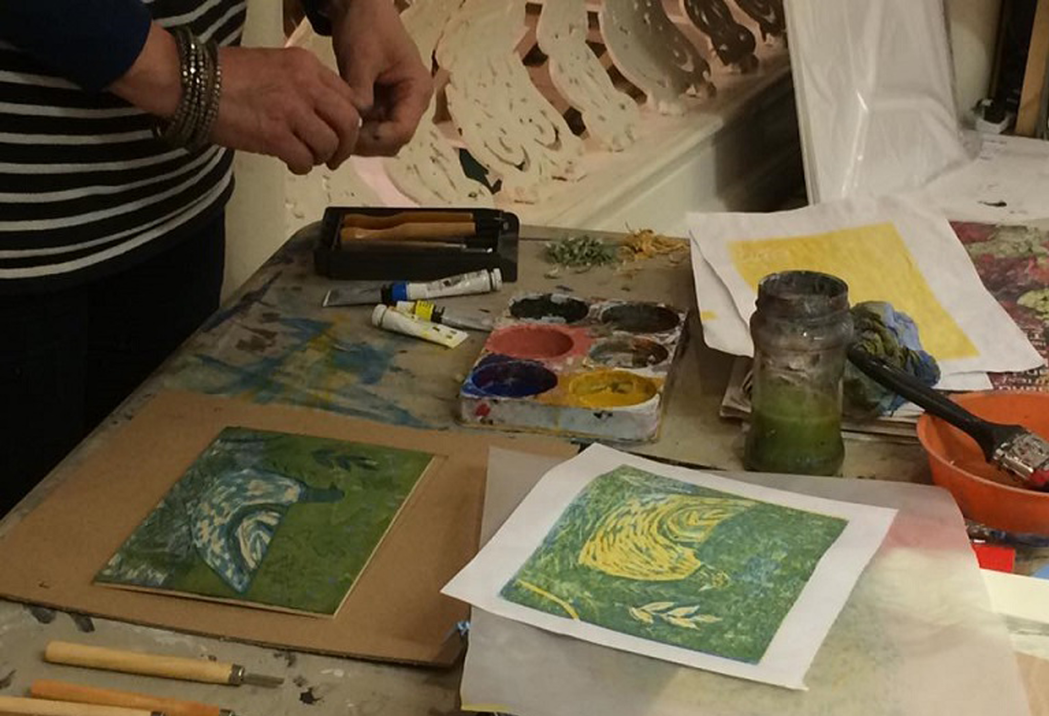 This beautifully subtle relief printing technique is ideal for those wishing to learn a green printing technique without a press. The workshop is aimed at everyone, from beginners to printmakers wanting to learn this beautiful technique. Enjoy a fun two days of carving and printing with an emphasis on experimentation and play.