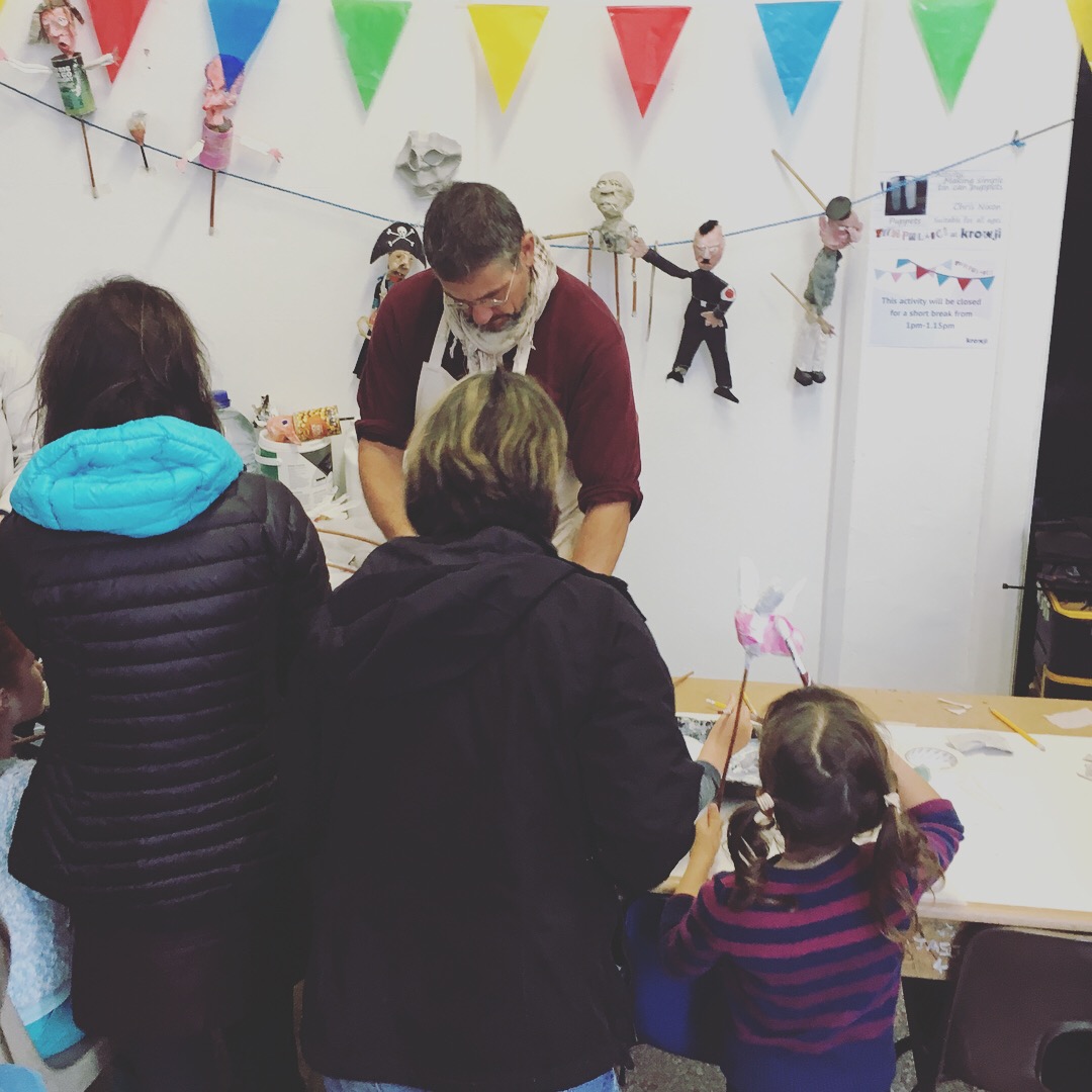 Visitors could turn their hand to other materials and get stuck-in marbling with mixed media artist Lesley Plumridge, get hands-on with clay, making pinch pots with Sarah Cooling or experimenting with ceramicist Susy Ward and have some fun making ‘beancan puppets’ with artist Chris Nixon.