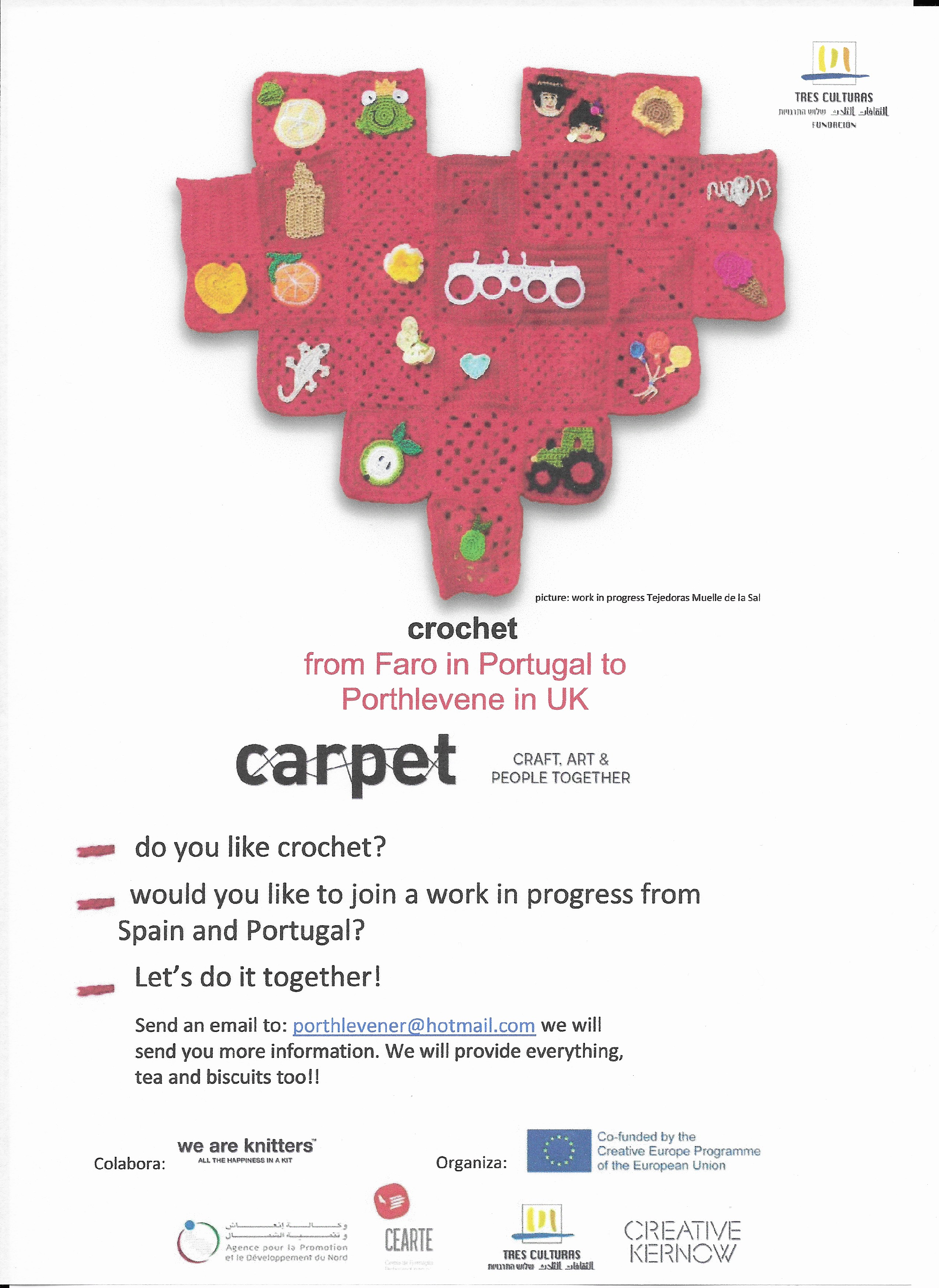 The piece of crocheted community artwork started in Spain, travelled to Portugal and now comes to Cornwall, returning to Spain in June to be exhibited.
