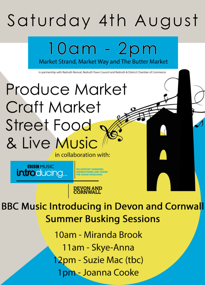 This Saturday sees the monthly Redruth Market hosting a stage of new music talent in collaboration with BBC introducing.