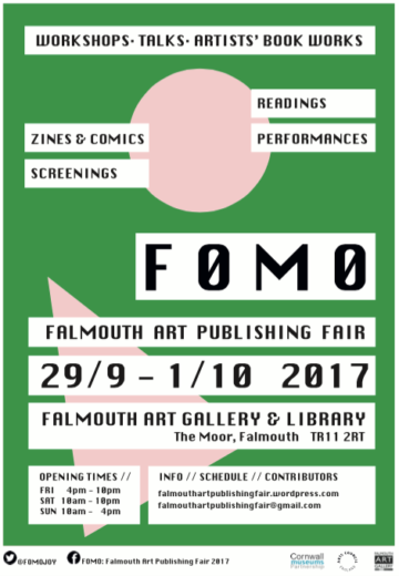 FOMO: Falmouth Art Publishing Fair is a project in collaboration with Falmouth Art Gallery, showcasing and promoting publishing as an expanded practice; bringing artists, performers, musicians, illustrators, historians, graphic designers,…