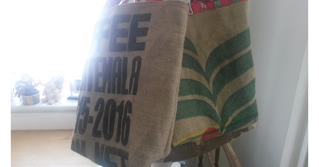 These include a variety of bags made using reclaimed coffee bean sacks. These lovely jute bags come from many countries and feature lots of images and lettering. Their condition varies but the best are put aside for using. Many times there is a clatter on the floor as a few remaining beans make a bid for freedom.