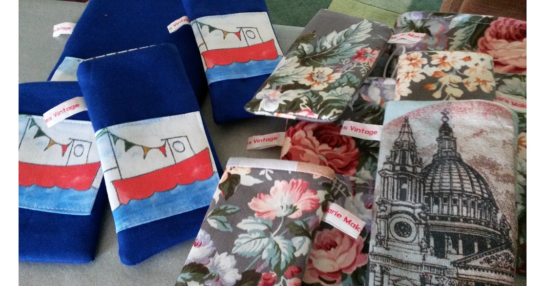Marie also makes a range of Handi-bags, cases for gadgets such as your Kindle, I-pad, Tablet or good, old fashioned diary and notebook. With pockets included, your pen, pencils, tickets, whatever will never be lost again. The range also includes cases for you glasses and sunglasses.