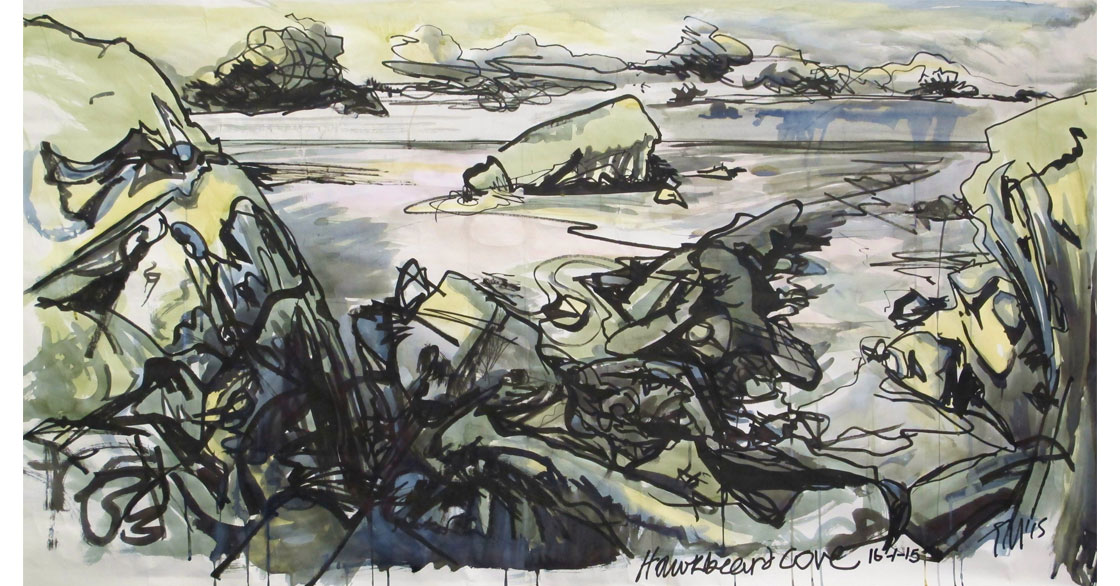 He paints and draws to communicate the magic, drama and power that this special place evokes working ‘plein air’ in hard to reach places threatened by encroaching tides, rock falls and precipitous drops. His work aims to articulate his emotional and spiritual response to the awesome power of this natural world.