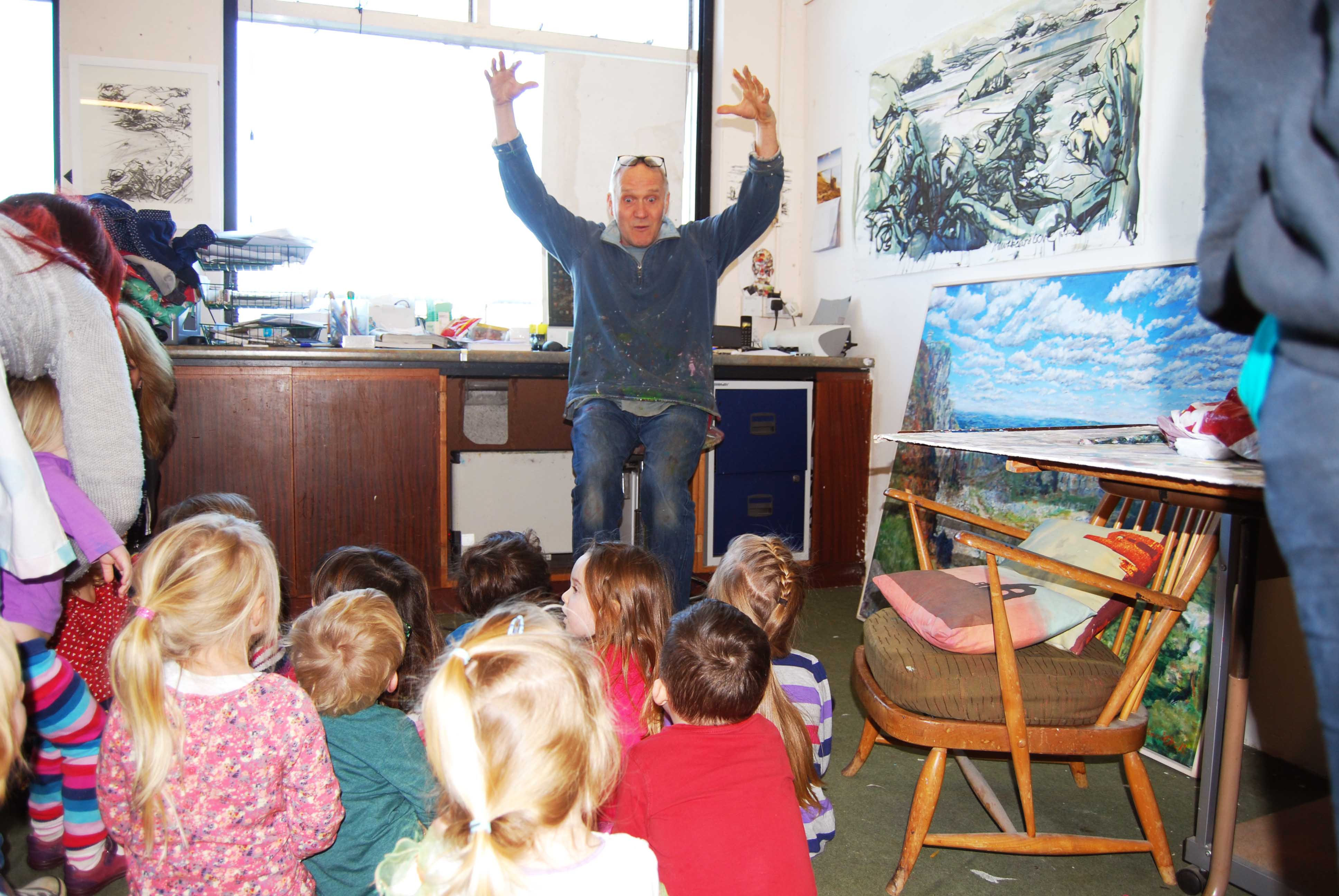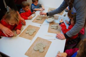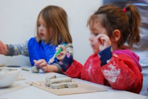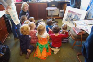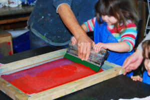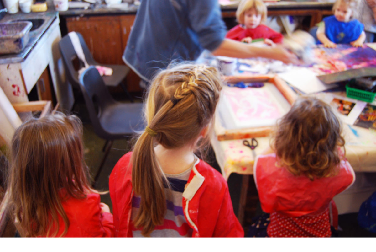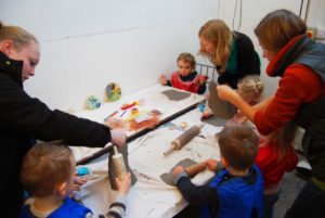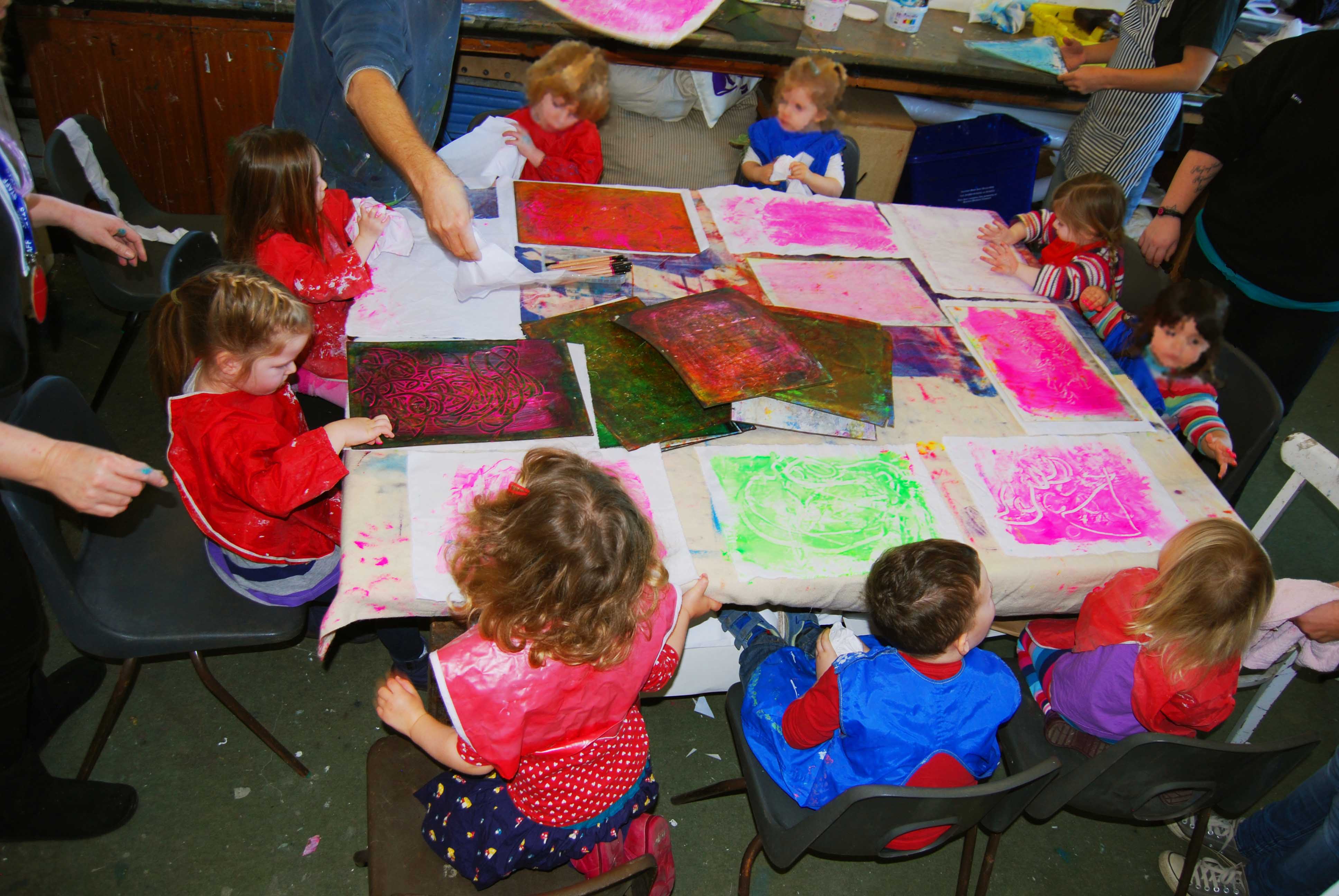 As part of Krowji’s community outreach programme during the Phase 1 redevelopment 6 of our artists ran a series of workshops with children from Windmill Nursery, including screen-printing, jewellery and ceramics.The children from the Windmill Nursery spent a day screenprinting with Krowji artist Tony Minnion, learning about textiles with Zoe Wright, making ceramic butterflies with Gail Aspden and Agnieszka Niesluchowska and creating jewellery with Anna Pope & Beth Robinson. The creations from the workshop were then turned into an 8 foot mural designed by project lead artist Tony Minnion.